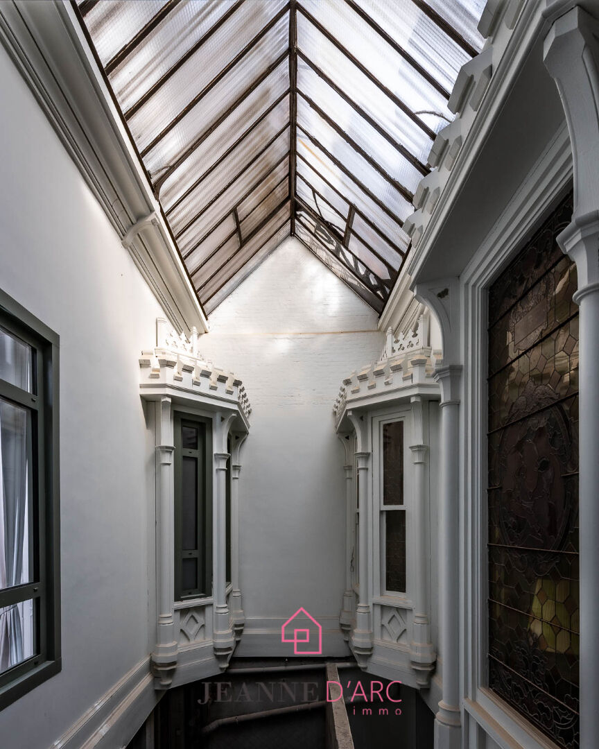 - Une pièce de vie de près de 20m2 baignée de lumière naturelle, dotée d'une belle hauteur sous plafond, parquet ancien, moulures raffinées et vitraux d'époque,