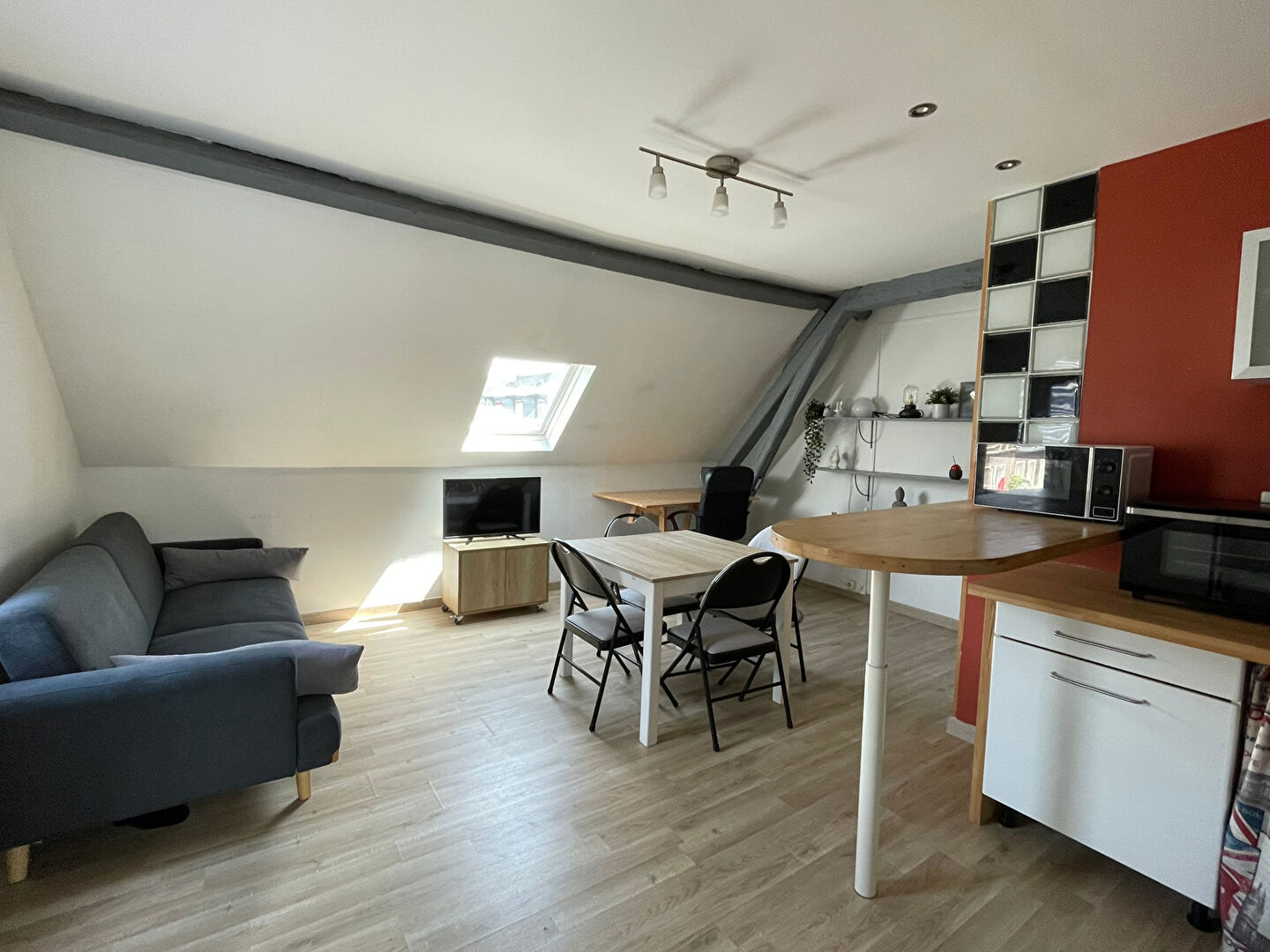 Jeanne d'Arc Immobilier vous propose de louer un appartement de type T1bis meublé de 30m² au sol dont 27m² Carrez, au 3ème étage d'un immeuble au pied du CHU, comprenant entrée, coin cuisine ouvert sur séjour, coin nuit indépendant, salle d'eau avec WC.