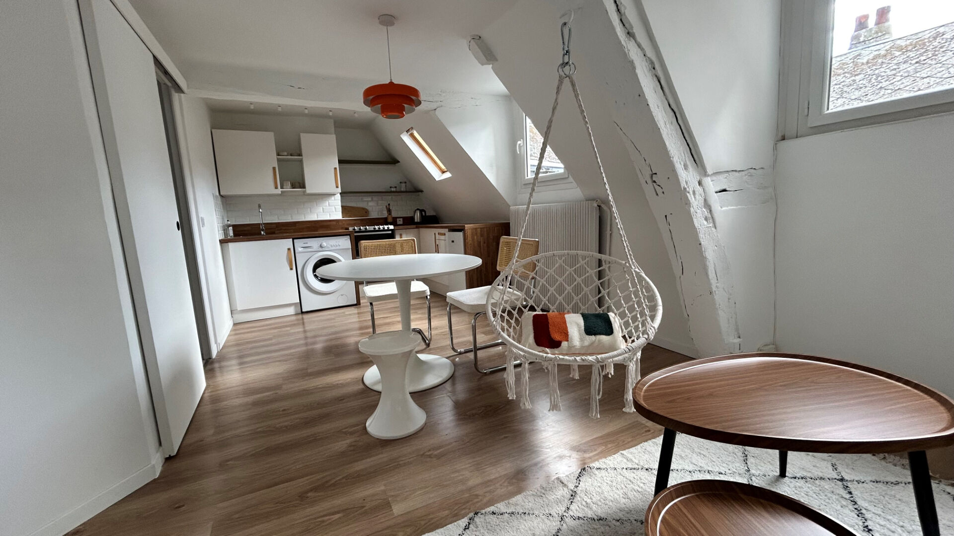 L'AGENCE JEANNE D'ARC IMMO propose en location un bel appartement de type 2 meublé comprenant : Entrée avec placards - Séjour/Salon avec cuisine aménagée et équipée ouverte - Chambre - Salle de bains- WC.