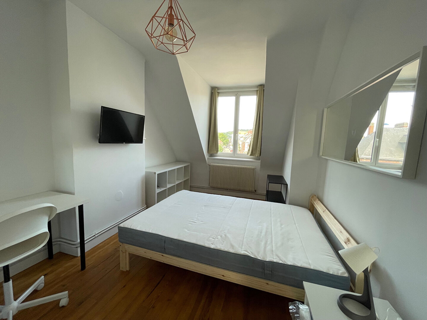 LE LOGEMENT DISPOSE : D'UNE ENTRÉE - PIÈCE DE VIE / CUISINE AMÉNAGÉE ET ÉQUIPÉE - 3 CHAMBRES ÉQUIPÉE DE LIT, ARMOIRE, BUREAU ET TÉLÉVISION - SALLE DE DOUCHES - WC SÉPARÉ.